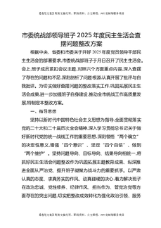 市委统战部领导班子2025年度民主生活会查摆问题整改方案.docx