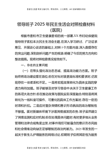 领导班子2025年民主生活会对照检查材料(医院).docx