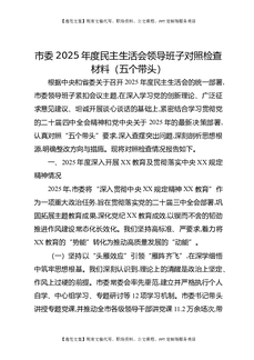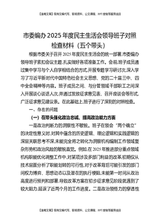 市委2025年度民主生活会领导班子对照检查材料(五个带头).docx