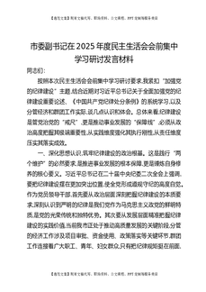 市委副书记在2025年度民主生活会会前集中学习研讨发言材料.docx