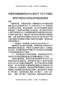 市委机构编制委员会办公室关于2025年度党员领导干部民主生活会召开情况的报告.docx