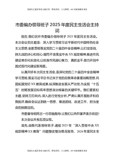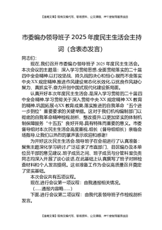 市委编办领导班子2025年度民主生活会主持词(含表态发言).docx