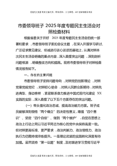市委领导班子2025年度专题民主生活会对照检查材料.docx