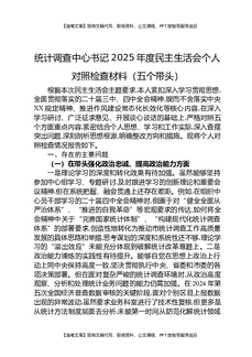 统计调查中心书记2025年度民主生活会个人对照检查材料(五个带头).docx