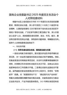 国有企业党委副书记2025年度民主生活会个人对照检查材料.docx