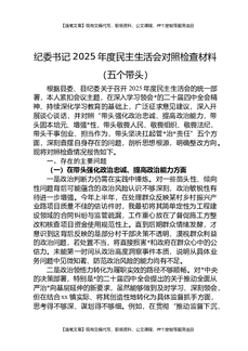纪委书记2025年度民主生活会对照检查材料(五个带头).docx