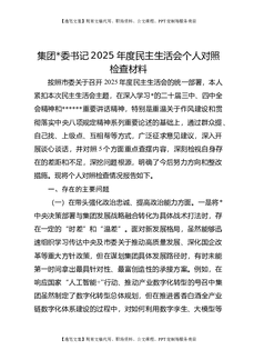 集团党委书记2025年度民主生活会个人对照检查材料(五个带头).docx