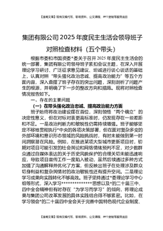 集团有限公司2025年度民主生活会领导班子对照检查材料(五个带头).docx