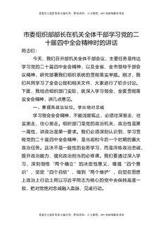 市委组织部部长在机关全体干部学习党的二十届四中全会精神时的讲话.docx