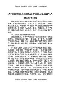 水利局党组成员巡查整改专题民主生活会个人对照检查材料.docx