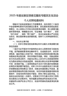 2025年度巡察反馈意见整改专题民主生活会个人对照检查材料.docx