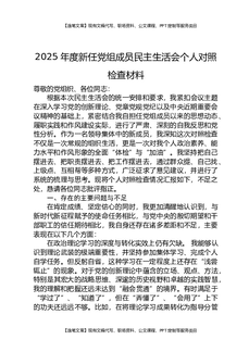 2025年度新任党组成员民主生活会个人对照检查材料.docx
