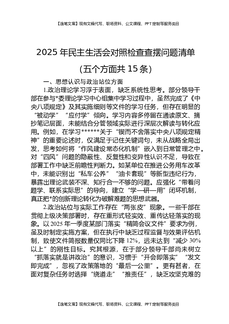 2025年民主生活会对照检查查摆问题清单(五个方面共15条).docx