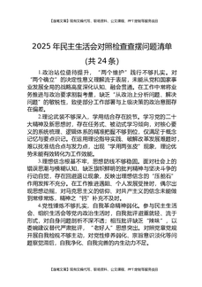 2025年民主生活会对照检查查摆问题清单(共24条).docx