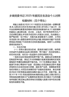 乡镇党委书记2025年度民主生活会个人对照检查材料(五个带头).docx