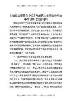 乡镇政法委员在2025年度民主生活会会前集中学习研讨发言材料.docx