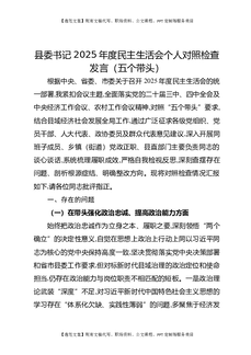 县委书记2025年度民主生活会个人对照检查发言(五个带头).docx