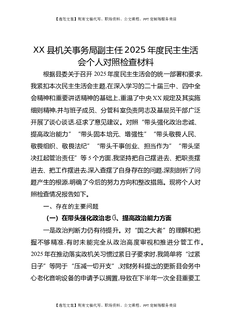 XX县机关事务局副主任2025年度民主生活会个人对照检查材料.docx