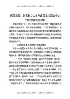 区委常委、副区长2025年度民主生活会个人对照检查发言材料.docx