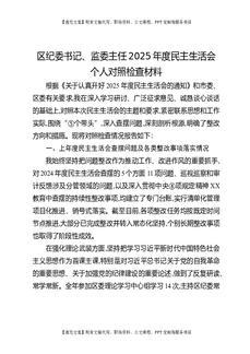 区纪委书记、监委主任2025年度民主生活会个人对照检查材料.docx