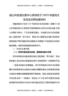 县公共资源交易中心领导班子2025年度民主生活会对照检查材料.docx