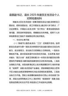 县委副书记、县长2025年度民主生活会个人对照检查材料.docx