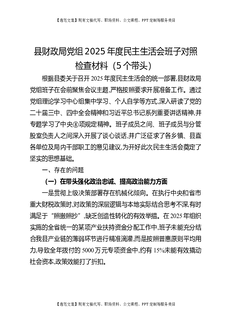 县财政局党组2025年度民主生活会班子对照检查材料(5个带头).docx