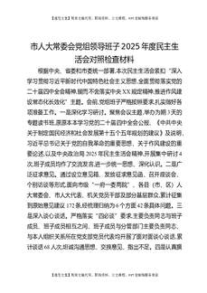 市人大常委会党组领导班子2025年度民主生活会对照检查材料.docx
