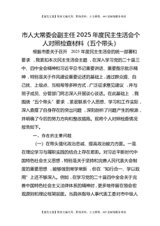 市人大常委会副主任2025年度民主生活会个人对照检查材料(五个带头).docx