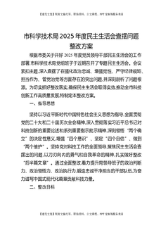 市科学技术局2025年度民主生活会查摆问题整改方案.docx