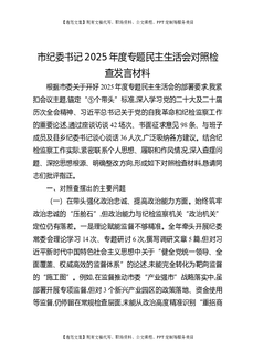 市纪委书记2025年度专题民主生活会对照检查发言材料.docx