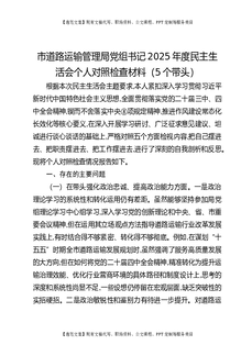 市道路运输管理局党组书记2025年度民主生活会个人对照检查材料(5个带头).docx