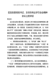 区发改委党组书记、主任在传达学习四中全会精神会议上的讲话.docx