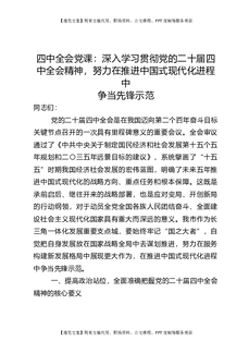 四中全会党课:深入学习贯彻全会精神,努力在推进中国式现代化进程中争当先锋示范.docx