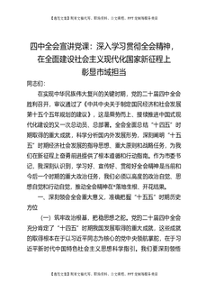四中全会宣讲党课:深入学习贯彻全会精神,在全面建设社会主义现代化国家新征程上彰显市域担当.docx