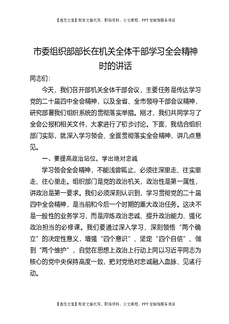 市委组织部部长在机关全体干部学习四中全会精神时的讲话.docx