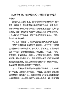 市政法委书记传达学习四中全会精神的研讨发言.docx