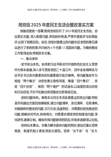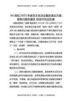 XX局党组2025年度民主生活会整改落实方案:聚焦问题抓整改,转变作风促发展.docx