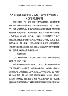 XX街道办事处主任2025年度民主生活会个人对照检查材料.docx