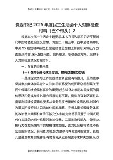 党委书记2025年度民主生活会个人对照检查材料(五个带头)2.docx