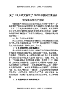 关于XX乡镇党委班子202X年度民主生活会整改落实情况的报告.docx