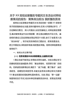 关于XX党组巡察整改专题民主生活会对照检查情况的报告:聚焦政治担当,狠抓整改质效.docx