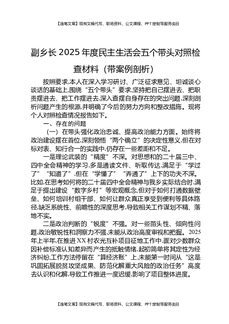 副乡长2025年度民主生活会五个带头对照检查材料(带案例剖析).docx