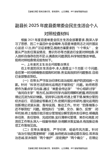 副县长2025年度县委常委会民主生活会个人对照检查材料.docx