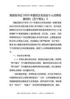 局党组书记2025年度民主生活会个人对照检查材料(五个带头)2.docx