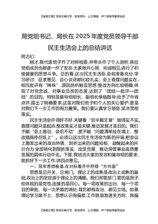 局党组书记、局长在2025年度党员领导干部民主生活会上的总结讲话.docx