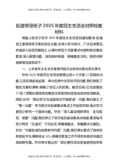 街道领导班子2025年度民主生活会对照检查材料.docx