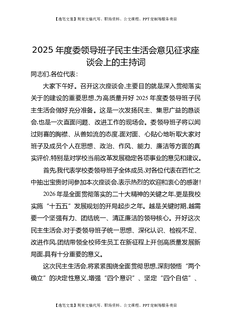 2025年度民主生活会上的主持讲话(1).docx