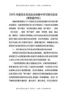 2025年度民主生活会会前集中学习研讨发言(常务副市长).docx