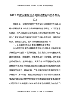 2025年度民主生活会对照检查材料五个带头(1).docx